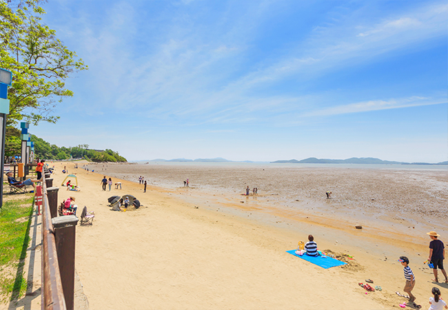 폭100m, 길이 200m의 모래사장과 해변을 둘러싼 소나무숲이 천혜의 자연경관을 뽐내는 동막해변은 강화에서 가장 큰 모래톱을 자랑하며 세계 5대 갯벌 중 하나로 꼽힐만큼 갯벌 체험을 하기에 좋은 곳으로 알려져 있습니다. 썰물 때에는 각종 조개를 비롯하여 칠게,가무락,갯지렁이 등 다양한 바다생물을 볼 수 있습니다. 동막해변 옆으로 자리잡은 분오리돈대는 해질녘 일몰이 아름답기로 유명한 명소입니다.
