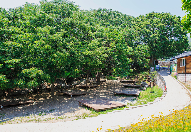 조선중기의 승려 기화(己和)가 마니산(摩尼山:469.4m) 정수사(精修寺)를 중수하고 이곳에서 수도했다고 해서 그의 당호(堂號)인 함허를 따서 함허동천이라는 이름으로 불리었습니다. 계곡의 너럭바위에는 기화가 썼다는 '涵虛洞天' 네 글자가 남아 있는데, '구름 한 점 없이 맑은 하늘에 잠겨 있는 곳'이라는 뜻입니다.