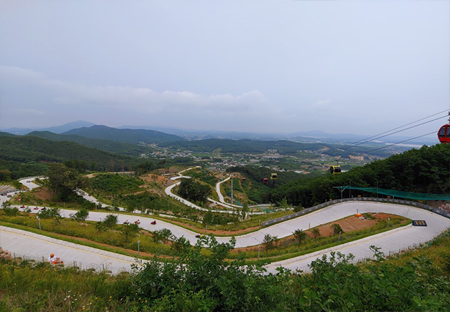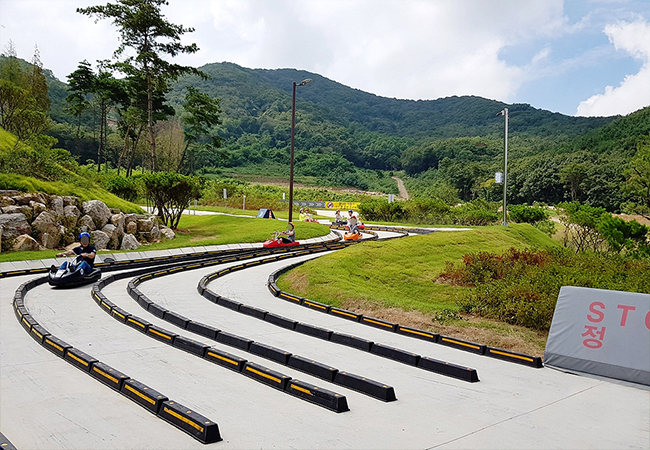 특별한 동력장치 없이 특수 제작된 카트를 타고 땅의 경사와 중력만을 이용해 트랙을 내려오는 다이나믹한 체험 레포츠시설로 방향조정과 제동이 가능하며, 어린이부터 어른까지 누구나 즐길 수 있는 무동력 바퀴썰매입니다. 트랙규모는 연장 1.8km/line 총 2코스 (오션코스, 밸리코스)로 동양 최대 규모를 자랑하며, 각 코스마다 흥미와 재미를 배가 시켜주는 360도 회전코스와 구간별로 연이어 배치된 터널과 낙차구간은 바다를 보며 내려올 수 있다.
