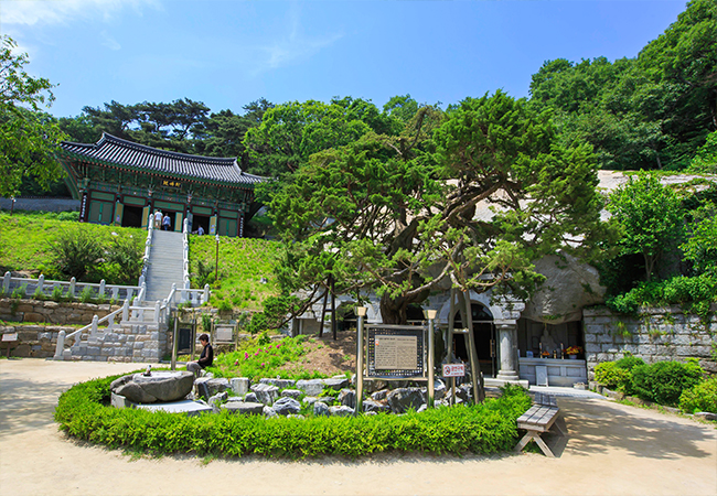 신라시대의 절로 대한불교조계종 직영사찰로 우리 나라 3대 관음영지 중 한 곳이며, 신라 선덕여왕 4년(635년) 화정대사가 창건하였다고 합니다. 인천시기념물 17호로 지정된 수령 약 600여 년 이나 된 향나무가절 마당에 늘 은은한 향을 머금고 있으며 새벽 동틀 무렵에 듣는 절 앞바다의파도 소리와 눈썹바위의 마애관음보살상은 예로부터 내려오는 강화 8경에 드는 명승지로 꼽히고 있습니다.