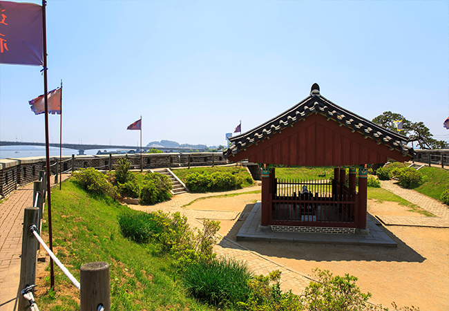 김포군 대명리와 초지대교를 사이에 두고 마주하는 초지진은 성곽의 둘레가 500m도 안 되는 작은 규모의 방어시설로 1716년(숙종 42) 강화 해안을 지키기 위해 조직되었습니다. 1870년대에 미국과 일본의 침략에 맞서 싸운 전적지이기도 한 이곳은 지금도 성채와 돈 옆의 소나무에는 전투 때 포탄에 맞은 흔적이 그대로 남아 있어, 당시의 격렬했던 전투상을 그대로 전해 주고 있습니다.